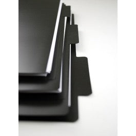 Keep your 11" x 17" paperwork in order with our handsome black poly file folders. Tabs are on the 17" side on these plastic sheet folders. Each folder measures 18.5" x 12.4" x .6" in size. When you have to take your files with you, these sturdy office folders won't stain or crease like ordinary manila folders.